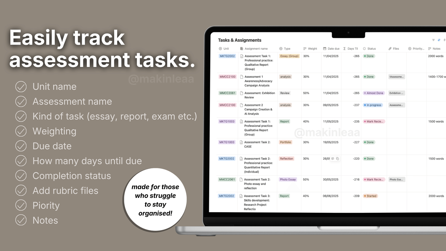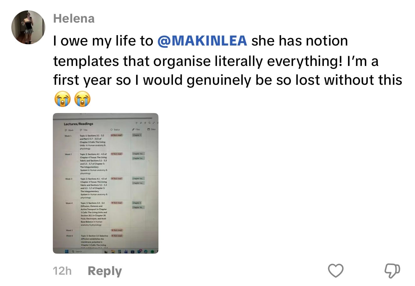 "It’s the only planner I’ve actually stuck to at uni, so I turned it into a Notion template for anyone who struggles to stay organised but still wants to feel on track all semester!"