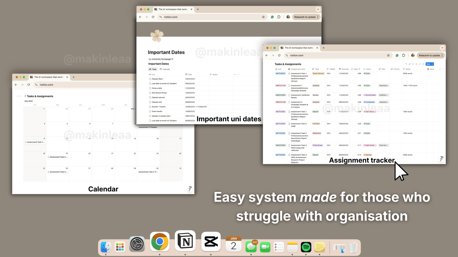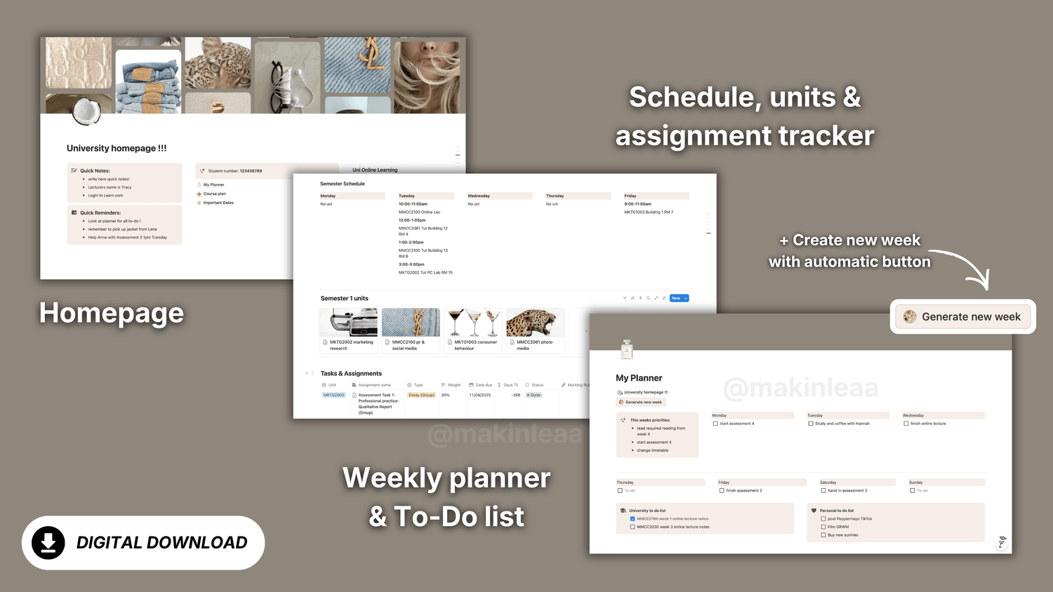 University Notion Planner – Aesthetic Student Dashboard Template CLEAN-GIRL (by @makinleaa)