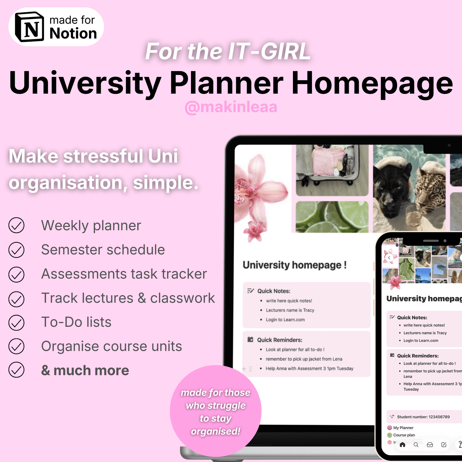 University Notion Planner – Aesthetic Student Dashboard Template IT-GIRL (by @makinleaa)
